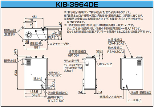 ※リモコンコード、配管部材、Φ106排気筒セット、油タンク等は別売です。