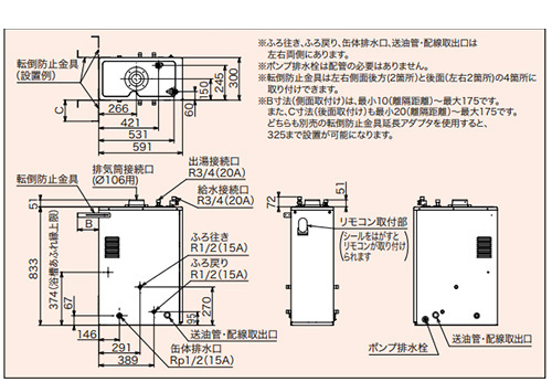 ※減圧弁、逃し弁、Φ106排気筒セット、リモコンコード、配管部材、油タンク等は別売です。