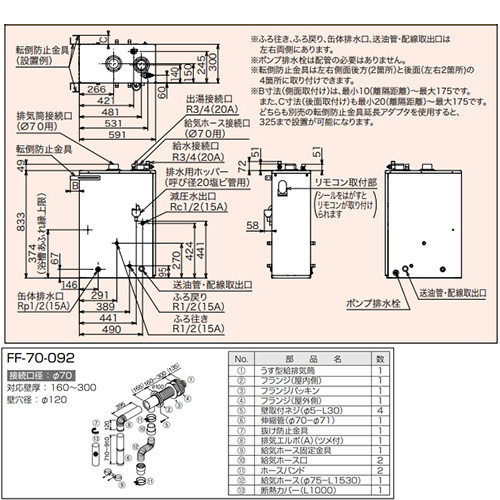 石油ふろ給湯器[浴室・台所リモコン+FF用給排気筒セット][給湯+追いだき][手動][お知らせ][減圧式][屋内据置型][上方排気][強制給排気][4万キロ]
