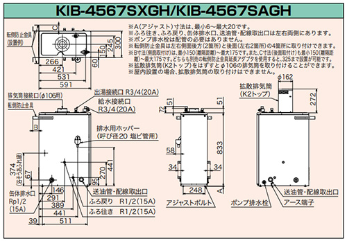 ※Φ106排気筒セット、据置架台、配管部材、油タンク、リモコンコード等は別売です。