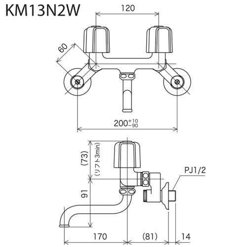 KM13N2W|KVK|キッチン用蛇口[壁][2ハンドル混合水栓][固定こま][逆止弁付][寒冷地]|リフォームネクスト