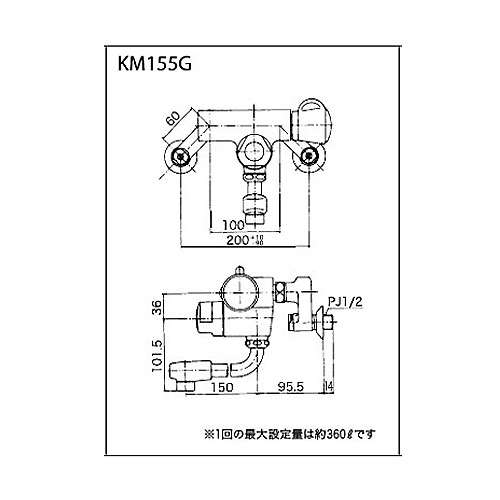 浴室用蛇口[壁][浴槽・洗い場兼用][定量止水付ミキシング式混合栓][KM155Gシリーズ][お湯ぴた][一般地]