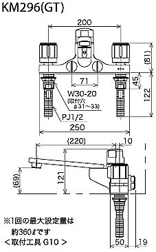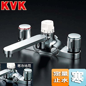 KM296Z|KVK|浴室用蛇口 お湯ぴたシリーズ[台][定量止水付2ハンドル式混合水栓][首長220mm][湯水芯200mm][寒冷地]|リフォームネクスト