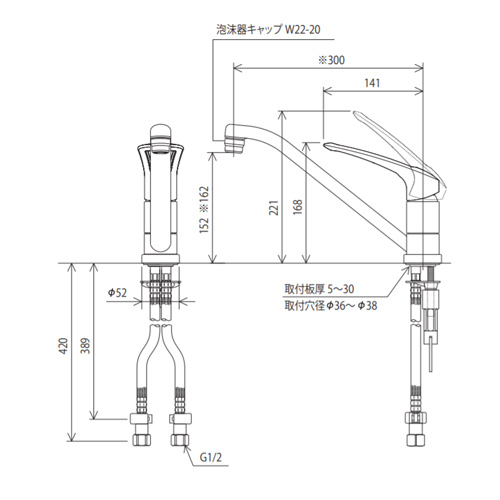 キッチン用蛇口[台][シングルレバー式混合栓][一般地]