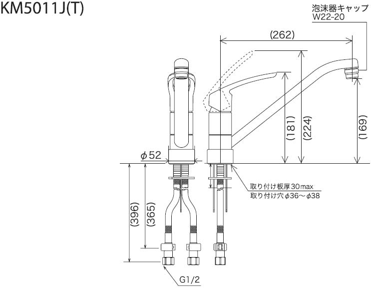 KM5011J|KVK|キッチン用蛇口[台][シングルレバー混合水栓][流し台用][上施工タイプ][泡沫][一般地]|リフォームネクスト