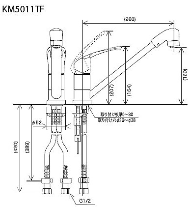 KM5011TF|KVK|キッチン用蛇口[台][シングルレバー混合水栓][流し台用][NSFシャワー][首振りシャワーヘッド][一般地]|リフォームネクスト