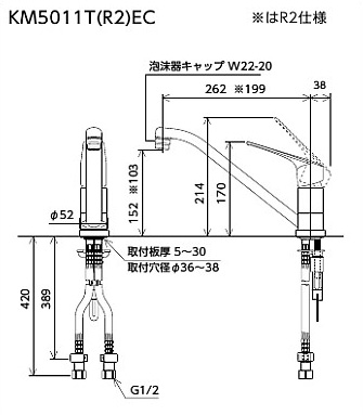 KM5011TR2EC|KVK|キッチン用蛇口[台][シングルレバー混合水栓][泡沫][スパウト200mm][一般地]|リフォームネクスト