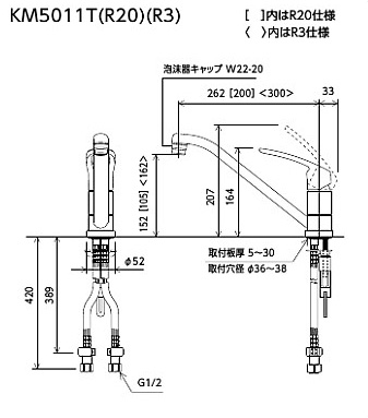KM5011TR3|KVK|キッチン用蛇口[台][シングルレバー混合水栓][泡沫][スパウト300mm][一般地]|リフォームネクスト