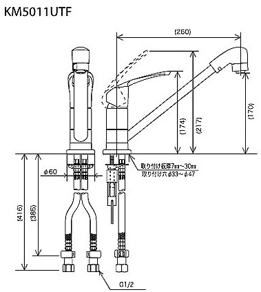 ・水栓取り付け穴Ф33〜Ф47