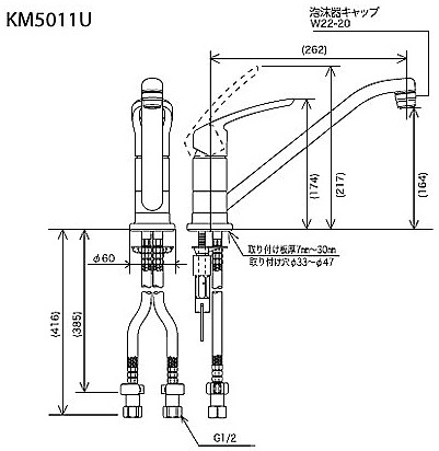 KM5011ZU|KVK|キッチン用蛇口[台][シングルレバー混合水栓][流し台用][取付穴兼用][泡沫][寒冷地]|リフォームネクスト
