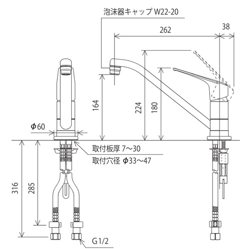 ・吐水口長さ:262mm