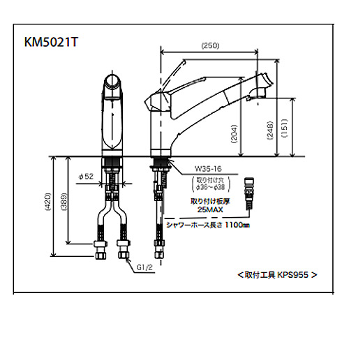 KM5021T|KVK|キッチン用蛇口[台][シングルレバー混合水栓][流し台用][NSFシャワー][ホース引出式][一般地]|リフォームネクスト