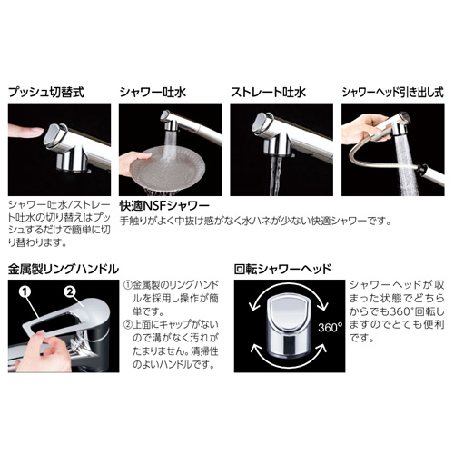 また、シャワーヘッドは引き出しができ、広いシンクの掃除も楽にできます。