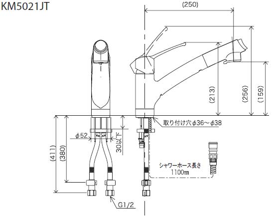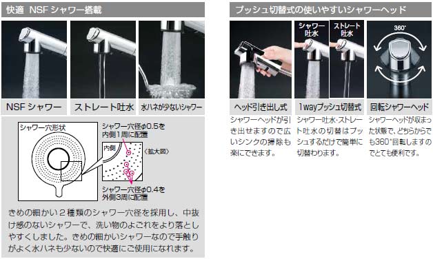 キッチン用蛇口[台][シングルレバー混合水栓][流し台用][上施工タイプ][NSFシャワー][ホース引出式][寒冷地]