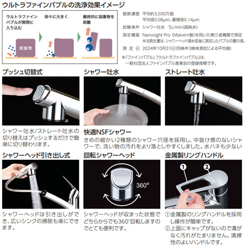 ウルトラファインバブル発生器を搭載したシングルシャワー付き混合栓です。eレバーで節水しながら快適操作が可能。