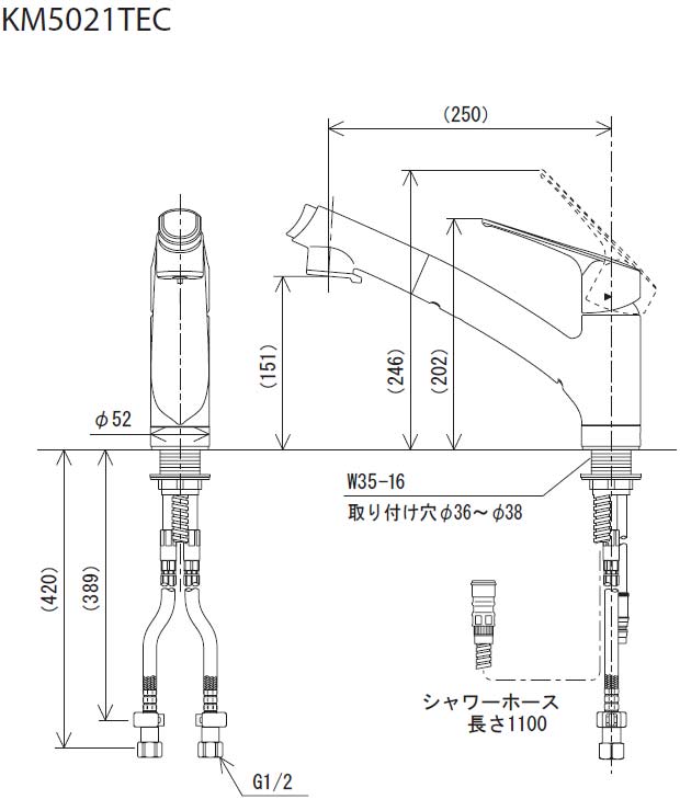 KM5021ZTEC|KVK|キッチン用蛇口[台][シングルレバー混合水栓][流し台用][eレバー][NSFシャワー][ホース引出式][寒冷地]|リフォームネクスト