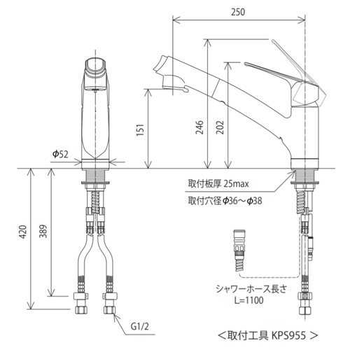 キッチン用蛇口[台][シングルレバー式シャワー付混合水栓][eレバー][撥水][寒冷地]