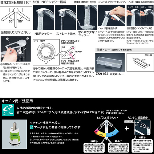 KM5031TEC|KVK|キッチン用蛇口[台][シングルレバー混合水栓][流し台用][上施工タイプ][eレバー][NSFシャワー][ホース引出式][一般地]|リフォームネクスト