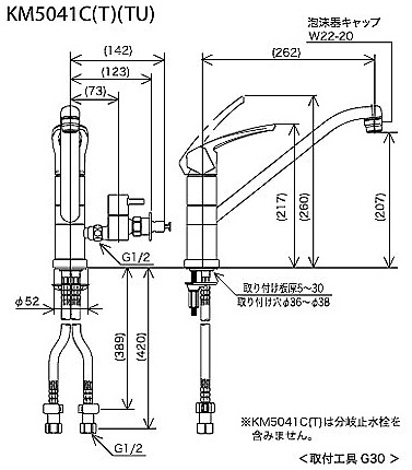 キッチン用蛇口[台][シングルレバー混合水栓][流し台用][分岐孔付][給水分岐専用:360度回転式][泡沫][一般地]