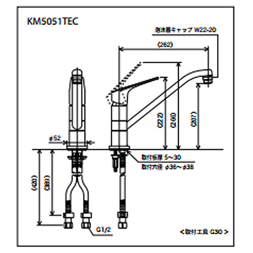 KM5051TEC|KVK|キッチン用蛇口[台][シングルレバー混合水栓][流し台用][吐水口広々][eレバー][泡沫][一般地]|リフォームネクスト
