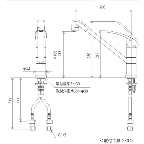キッチン用蛇口[台][シングルレバー式シャワー付混合栓][一般地]