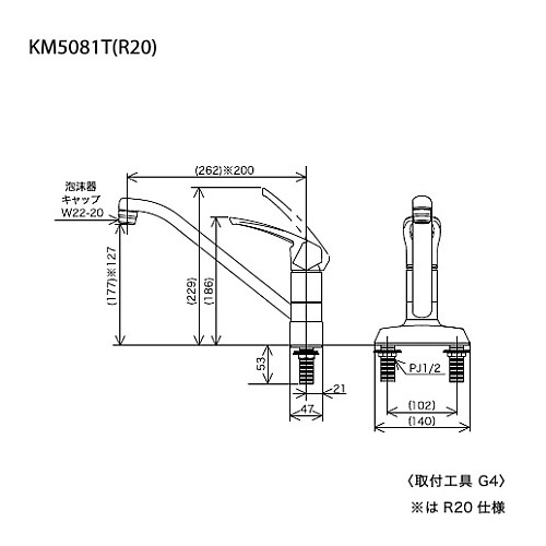 ●キッチン用蛇口[台][シングルレバー混合水栓][流し台用][泡沫][首長200mmパイプ付][湯水芯102mm][一般地]