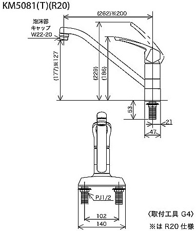 KM5081Z|KVK|キッチン用蛇口[台][シングルレバー混合水栓][流し台用][泡沫][湯水芯102mm][寒冷地]|リフォームネクスト