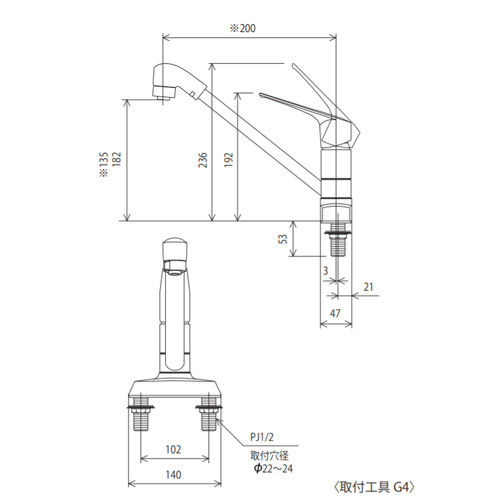 キッチン用蛇口[台][シングルレバー式シャワー付混合栓][200mmパイプ付][eレバー][寒冷地]