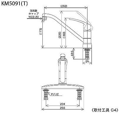 KM5091|KVK|キッチン用蛇口[台][シングルレバー混合水栓][流し台用][泡沫][湯水芯204mm][一般地]|リフォームネクスト