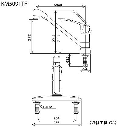 KM5091TF|KVK|キッチン用蛇口[台][シングルレバー混合水栓][流し台用][NSFシャワー][首振りシャワーヘッド][湯水芯204mm][一般地]|リフォームネクスト