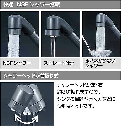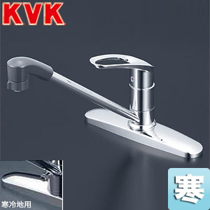 KM5091ZTF|KVK|キッチン用蛇口[台][シングルレバー混合水栓][流し台用][NSFシャワー][首振りシャワーヘッド][湯水芯204mm][寒冷地]|リフォームネクスト