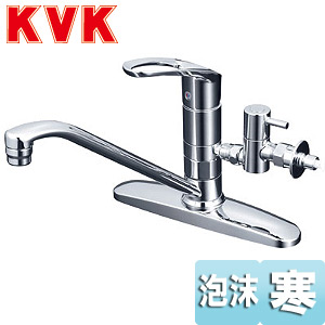 キッチン用蛇口[台][シングルレバー混合水栓][流し台用][分岐止水栓付][2箇所同時分岐:固定式][泡沫][湯水芯204mm][寒冷地]