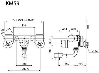 浴室用蛇口[壁][浴槽・洗い場兼用][定量止水付2ハンドル混合栓][KM59シリーズ][お湯ぴた][一般地]