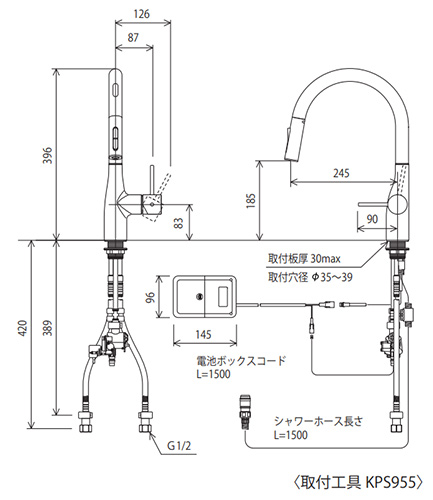 キッチン用蛇口 KM6071シリーズ[台][シングルシャワー付混合水栓][自動水栓][乾電池式][センサー付][グースネック][スパウト245mm][吐水口回転規制110度][一般地]