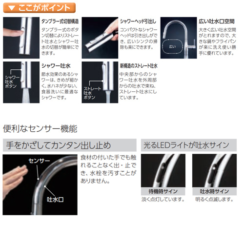 キッチン用蛇口 KM6071シリーズ[台][シングルシャワー付混合水栓][自動水栓][AC100V][センサー付][グースネック][スパウト245mm][吐水口回転規制110度][一般地]