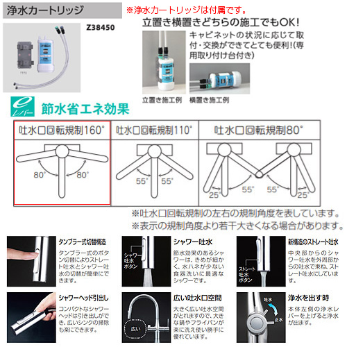 キッチン用蛇口 浄水器水栓シリーズ[台][シングルレバー混合水栓][浄水カートリッジ付属][ホース引出式][グースネック][eレバー][吐水口回転規制160度][スパウト245mm][一般地]