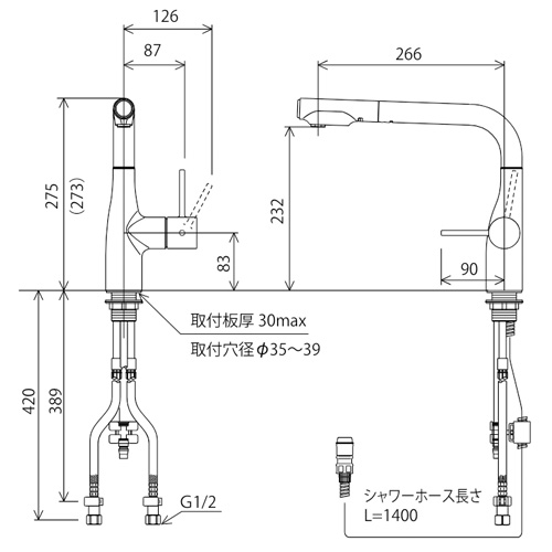 ・吐水口長さ:266mm