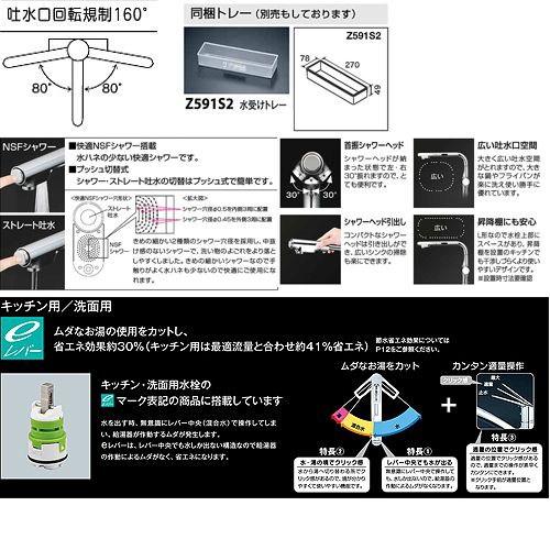 キッチン用蛇口[台][シングルレバー混合水栓][流し台用][eレバー][NSFシャワー][ホース引出式][L形][吐水口回転規制160度][一般地]