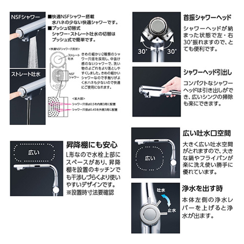 キッチン用蛇口[台][シングルレバー混合水栓][浄水器セット:Z38450][eレバー][NSFシャワー][ホース引出式][L形][一般地]
