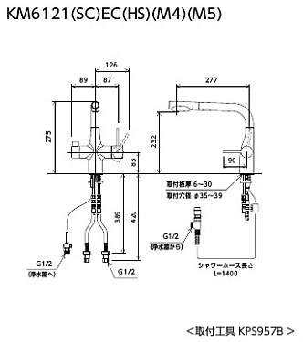 KM6121SCECHS|KVK|キッチン用蛇口[台][シングルレバー混合水栓][浄水器付][スパウト277mm][一般地]|リフォームネクスト