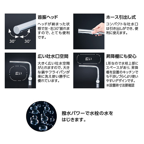 キッチン用蛇口[台][シングルレバー混合水栓][流し台用][eレバー][ホース引出式][寒冷地]