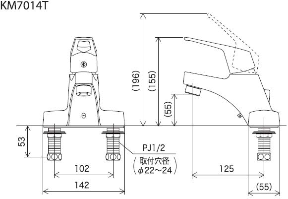 KM7014ZT|KVK|洗面用蛇口[台][シングルレバー混合水栓][ゴム栓付][寒冷地]|リフォームネクスト