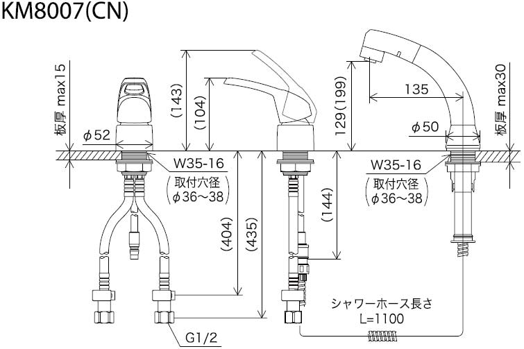 KM8007Z|KVK|洗面用蛇口[台][洗髪シャワー][シングルレバー混合水栓][シャワー引出][寒冷地]|リフォームネクスト
