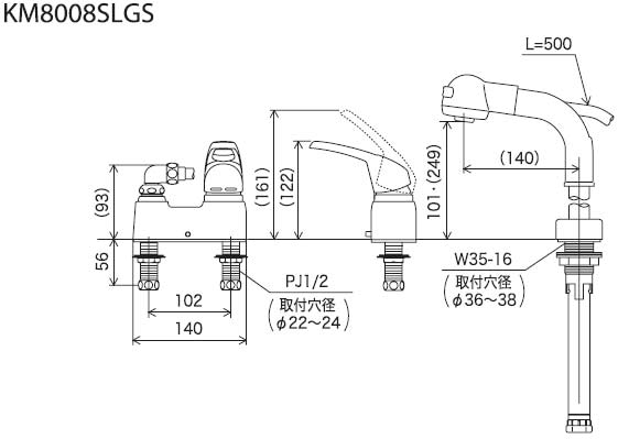 KM8008ZSLGS|KVK|洗面用蛇口[台][洗髪シャワー][シングルレバー混合水栓][シャワー引出][ゴム栓付][寒冷地]|リフォームネクスト
