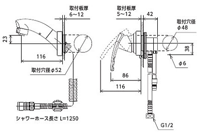 洗面用蛇口[壁][シングルレバー式洗髪シャワー][シャワー引出][一般地]