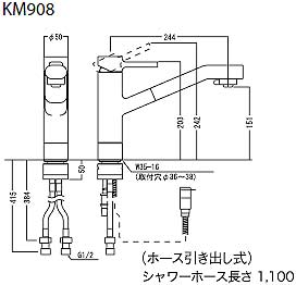 KM908Z|KVK|キッチン用蛇口[台][シングルレバー混合水栓][流し台用][シャワー付][ホース引出式][寒冷地]|リフォームネクスト