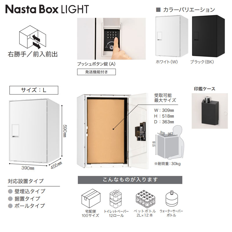 宅配ボックス ボックスライト[ボックスのみ][前入][前出][FF][プッシュボタン錠][右開き][サイズL]