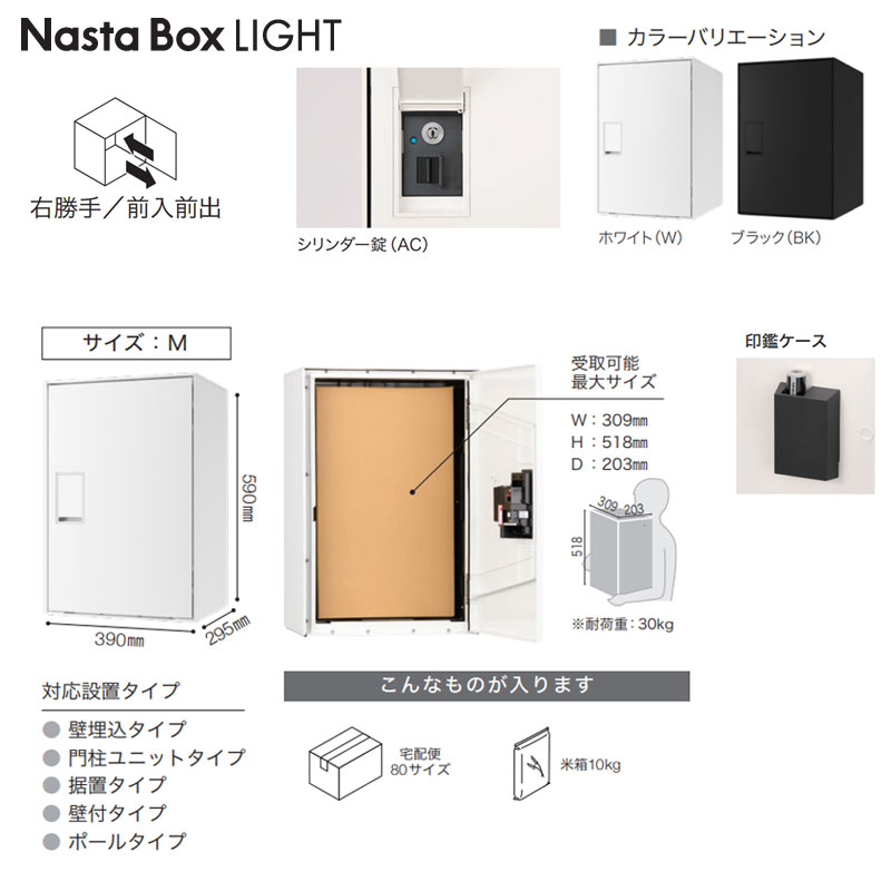 宅配ボックス ボックスライト[ボックスのみ][前入][前出][FF][シリンダー錠][右開き][サイズM]
