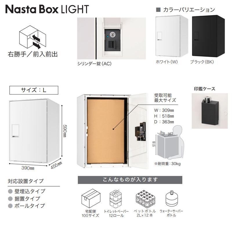 宅配ボックス ボックスライト[ボックスのみ][前入][前出][FF][シリンダー錠][右開き][サイズL]