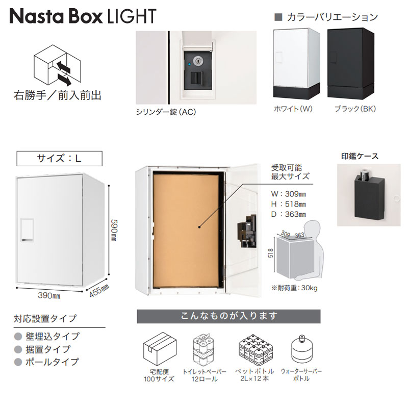 宅配ボックスセット ボックスライト[据置用幅木][前入][前出][FF][シリンダー錠][右開き][サイズL]
